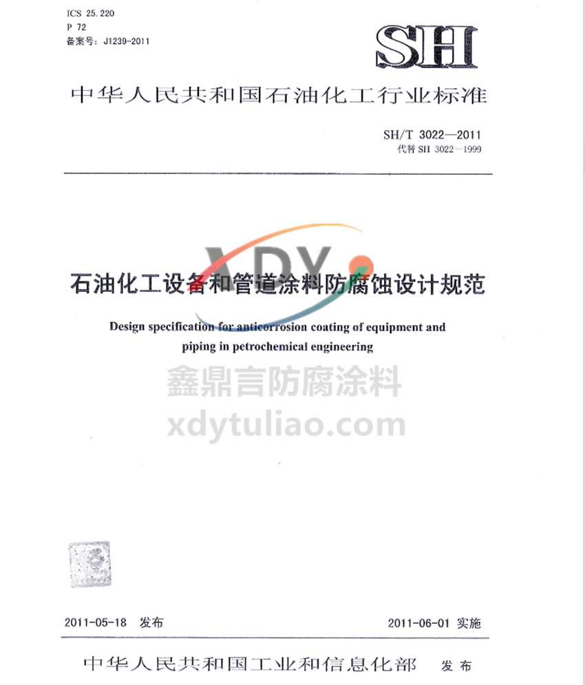 石化設(shè)備管道涂料防腐配套標(biāo)準(zhǔn)SH/T 3022-2011