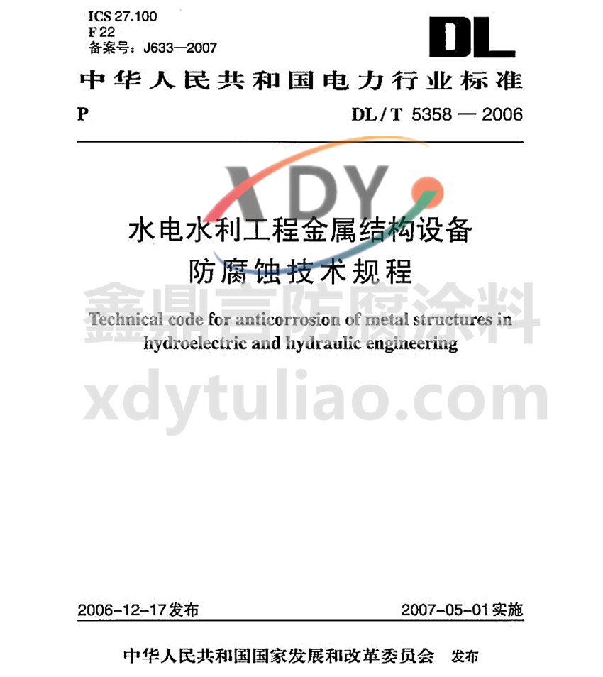 DL/T 5358-2006水電水利工程金屬結(jié)構(gòu)大氣中的防腐配套涂層系統(tǒng)標(biāo)準(zhǔn)