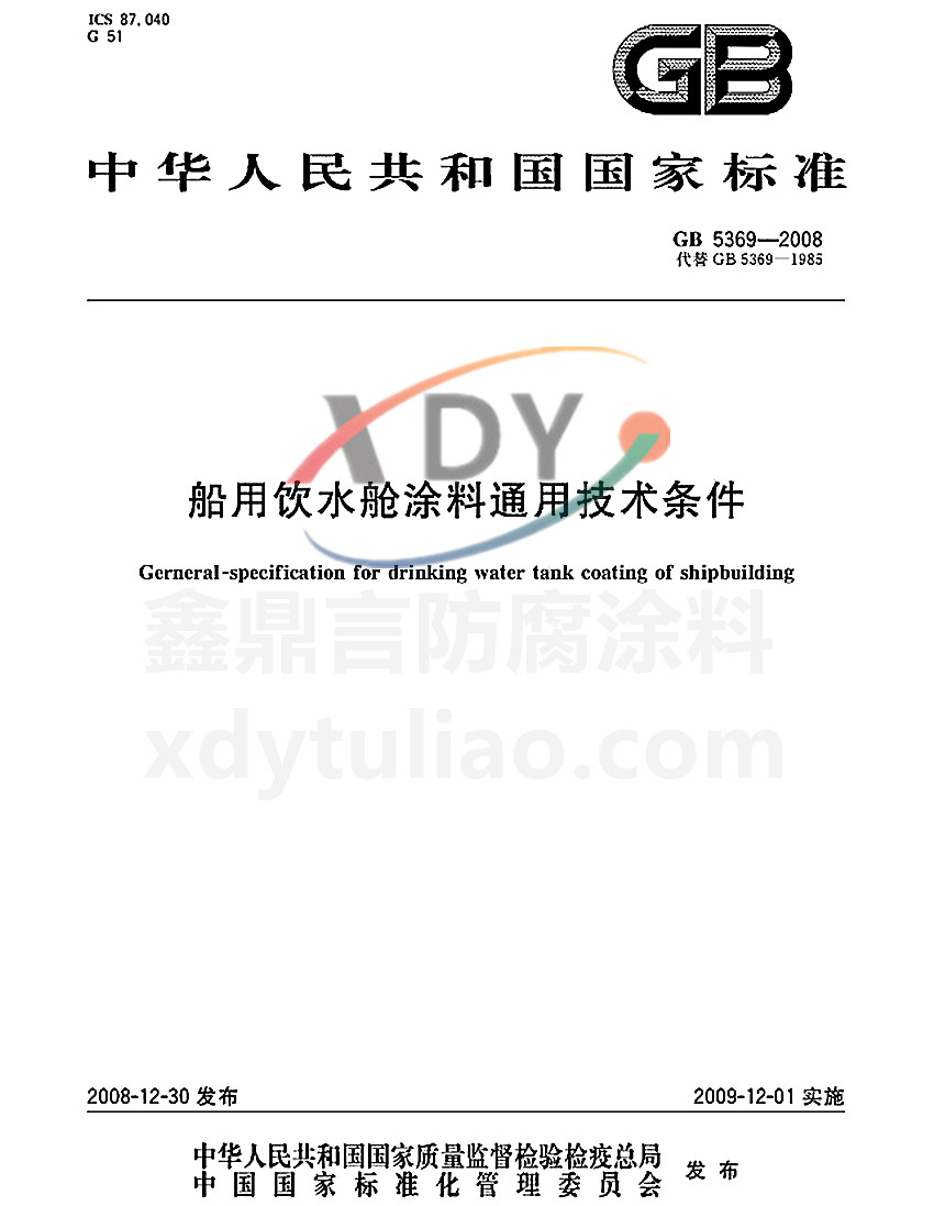 GB 5369-2008船用飲水艙涂料通用技術(shù)條件國家標準