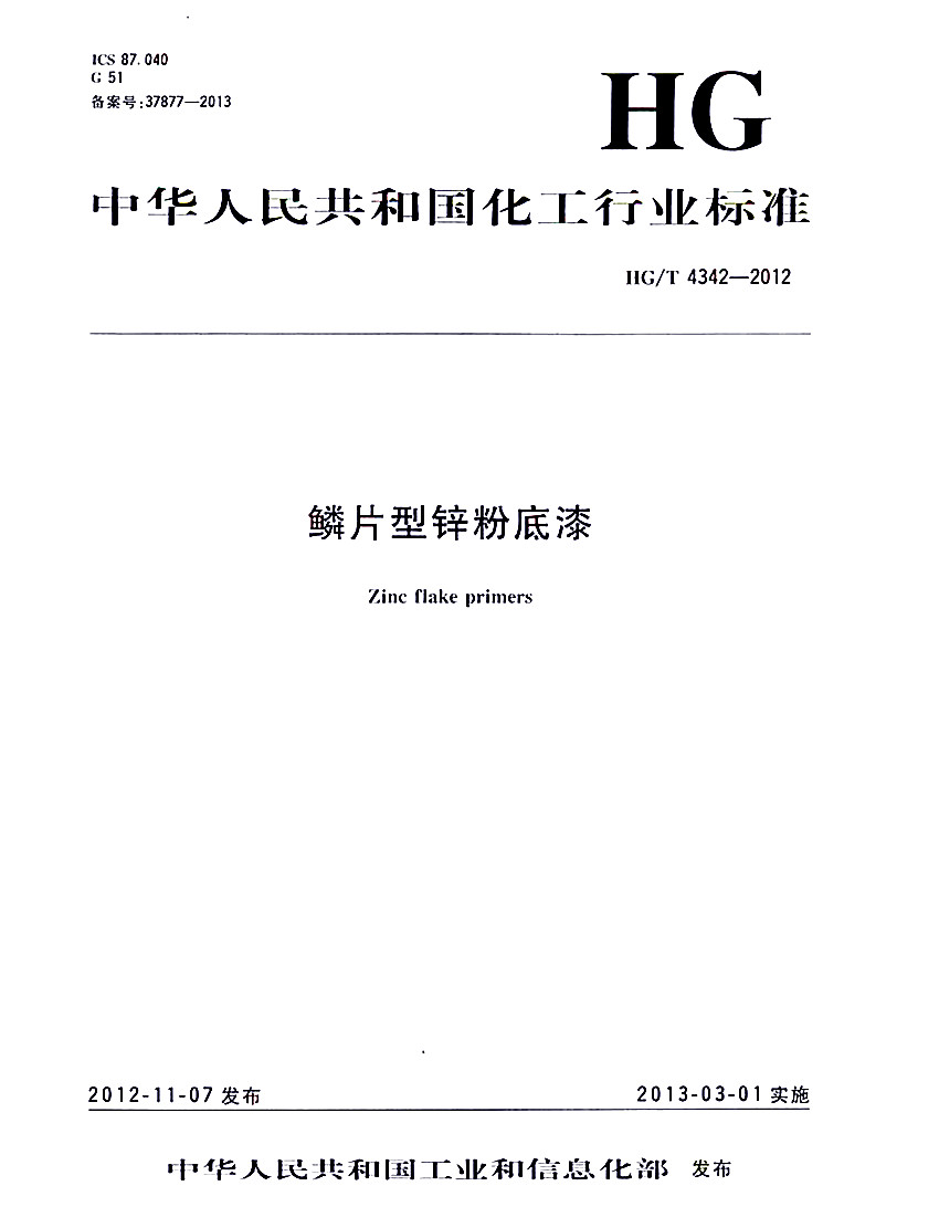 HG/T 4342-2012鱗片型鋅粉底漆標(biāo)準(zhǔn)下載