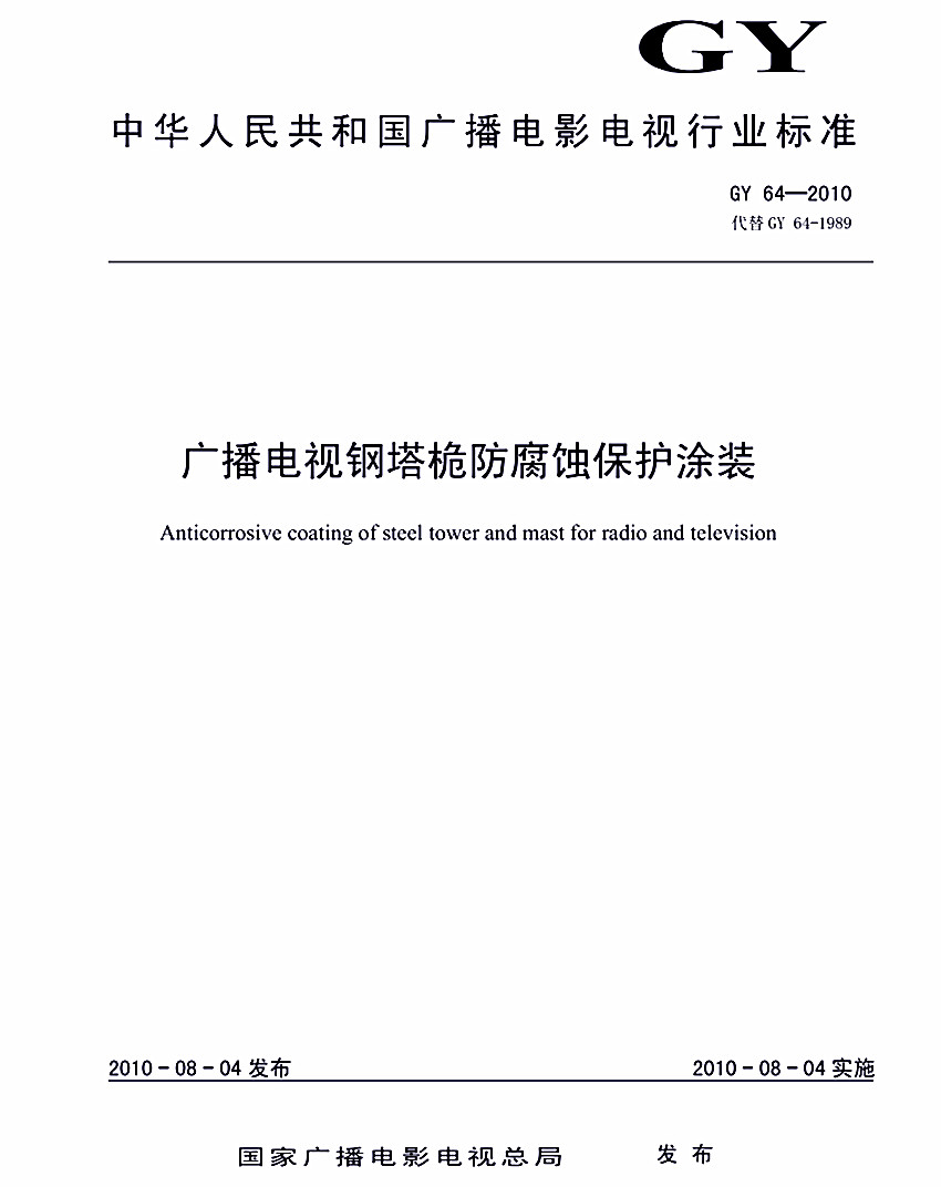 廣播電視塔鋼結(jié)構(gòu)防腐漆配套是小編參考GY 64-2010《廣播電視鋼塔桅防腐蝕保護涂裝》整理出來的,大家可以放心參考。更過防腐涂料配套、施工工藝和執(zhí)行標(biāo)準(zhǔn)等信息,可以查看鑫鼎言防腐涂料網(wǎng)站。