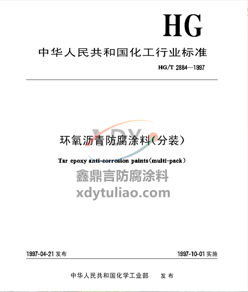 環(huán)氧瀝青防腐涂料(分裝)標(biāo)準(zhǔn)HG/T2884-1997:本標(biāo)準(zhǔn)規(guī)定了環(huán)氧瀝青防腐涂料(分裝)產(chǎn)品的要求、試驗方法及標(biāo)志、標(biāo)簽、包裝。本標(biāo)準(zhǔn)適用于以環(huán)氧樹脂、煤焦瀝青為漆基,加入顏料、體質(zhì)顏料、溶劑、助劑及固化劑而制成的雙組份環(huán)氧瀝青漆底、面漆配套的防腐涂料(包括普通型和厚膜型兩類)。該涂料主要用于水下及地下鋼結(jié)構(gòu)的重防腐涂裝。