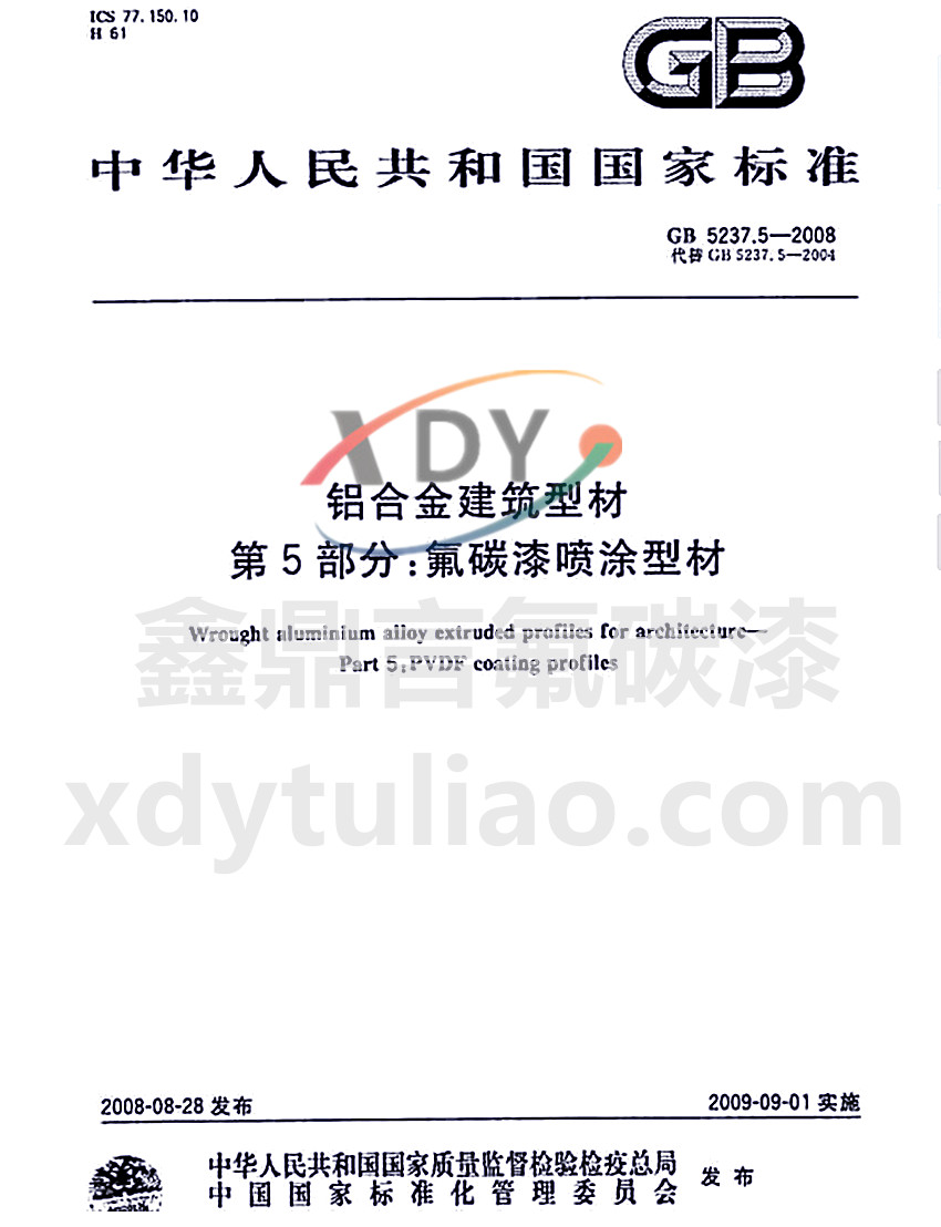 氟碳漆噴涂型材標(biāo)準(zhǔn)GB 5237.5-2008