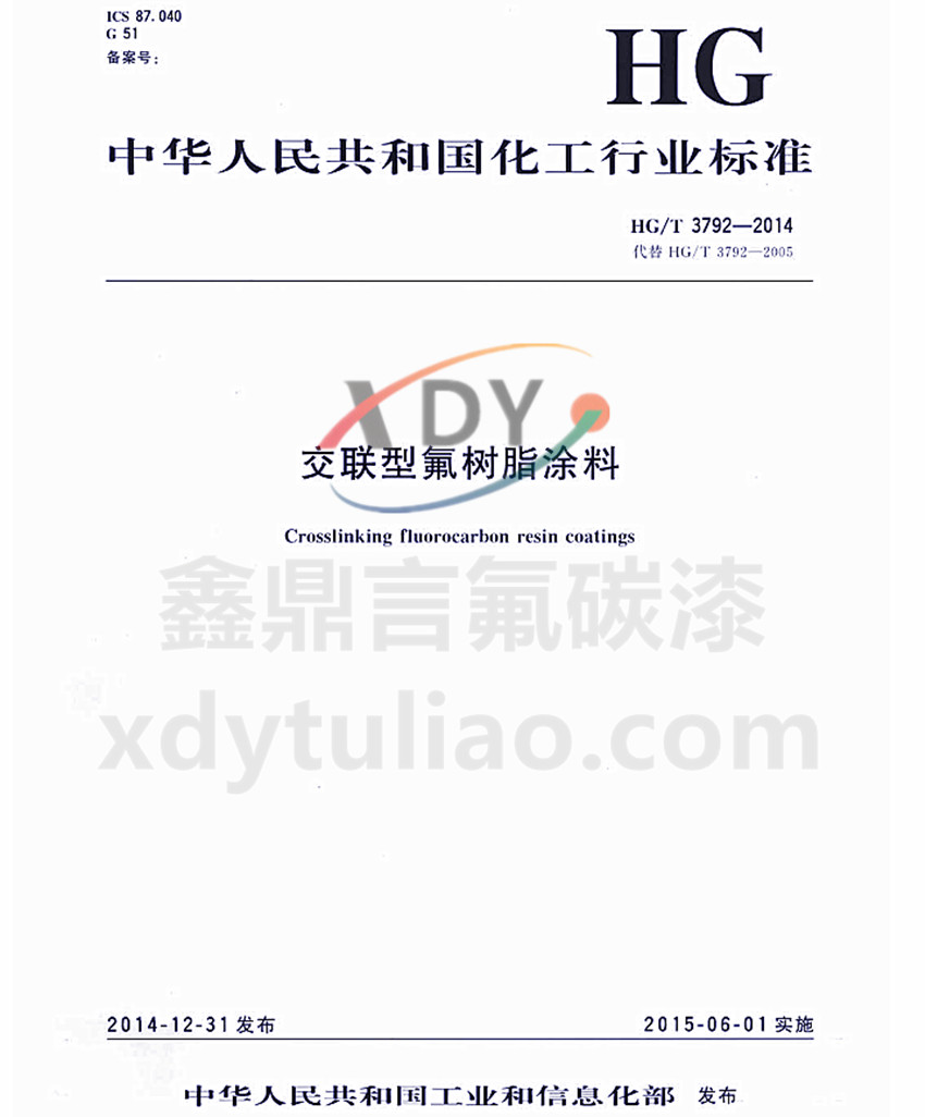 中華人民共和國化工行業(yè)標(biāo)準(zhǔn)HG/T3792-2014交聯(lián)型氟樹脂涂料替代HG/T3792-2005 本標(biāo)準(zhǔn)根據(jù)交聯(lián)型氟樹脂涂料的主要應(yīng)用領(lǐng)域分為3種類:Ⅰ型為建筑外墻用氟樹脂涂料;Ⅱ型為橋梁、儲罐等混凝土設(shè)施表面用氟樹脂涂料;Ⅲ型為鋼結(jié)構(gòu)等金屬表面用氟樹脂涂料。 常溫交聯(lián)型氟碳漆按化工行業(yè)標(biāo)準(zhǔn)HG/T3792-2014交聯(lián)型氟樹脂涂料執(zhí)行,性能達(dá)到標(biāo)準(zhǔn)中的技術(shù)要求